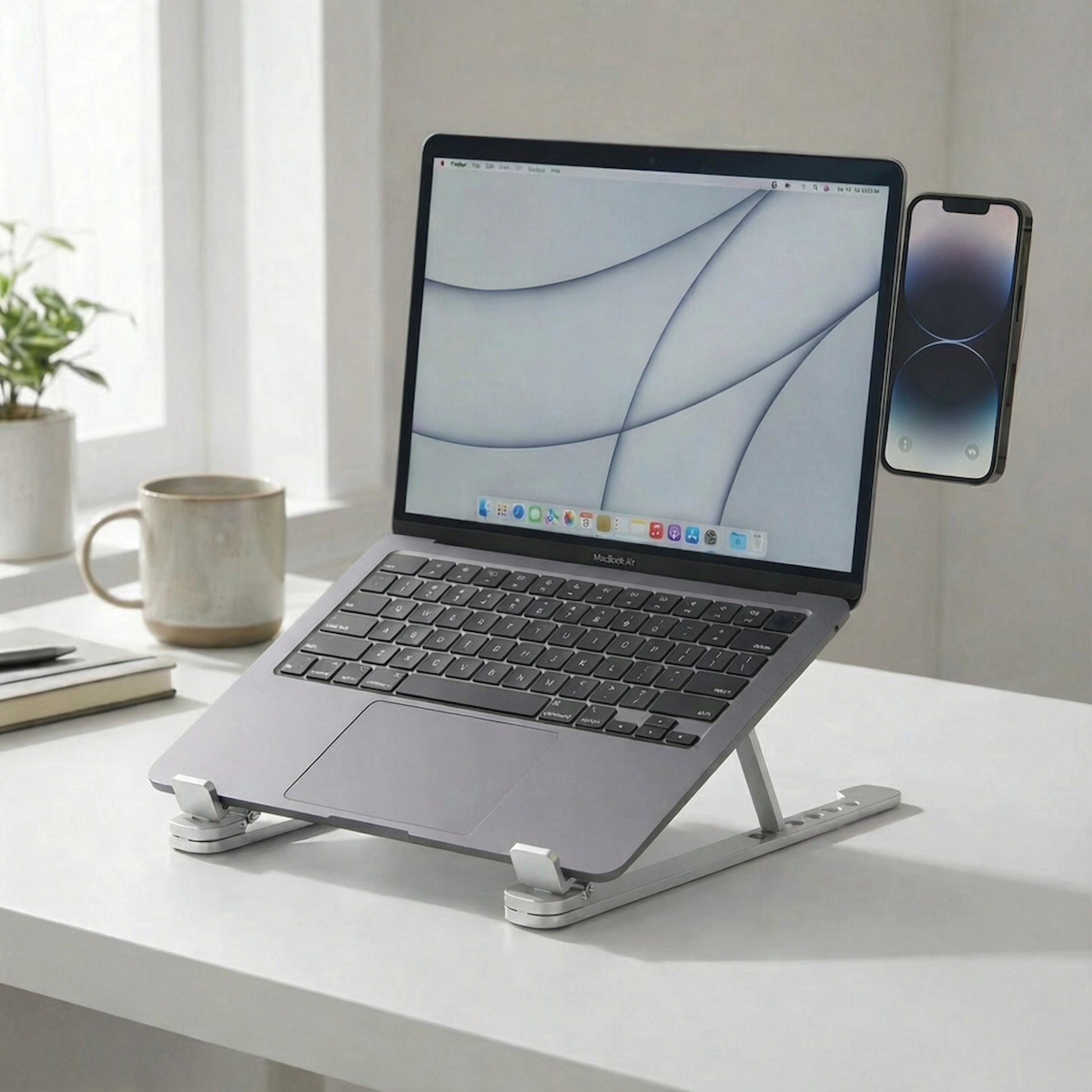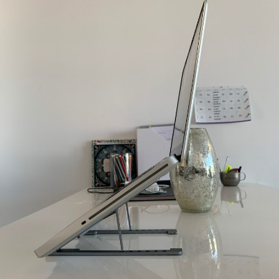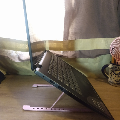 פותחים את המעמד, בוחרים מדרגת גובה, מניחים את הלפטופ - ומתחילים לעבוד.
